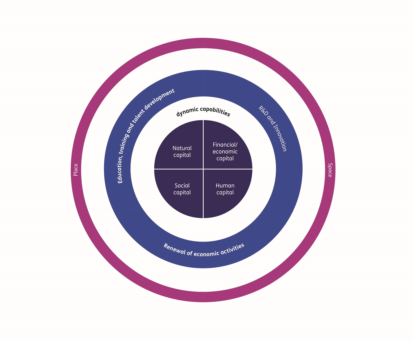 Only when space and place come together does room emerge for productive, innovative and resilient development. The four capitals, adaptive capability, three activities and a broad perspective on use of space together determine how agile and future-proof our economy is.