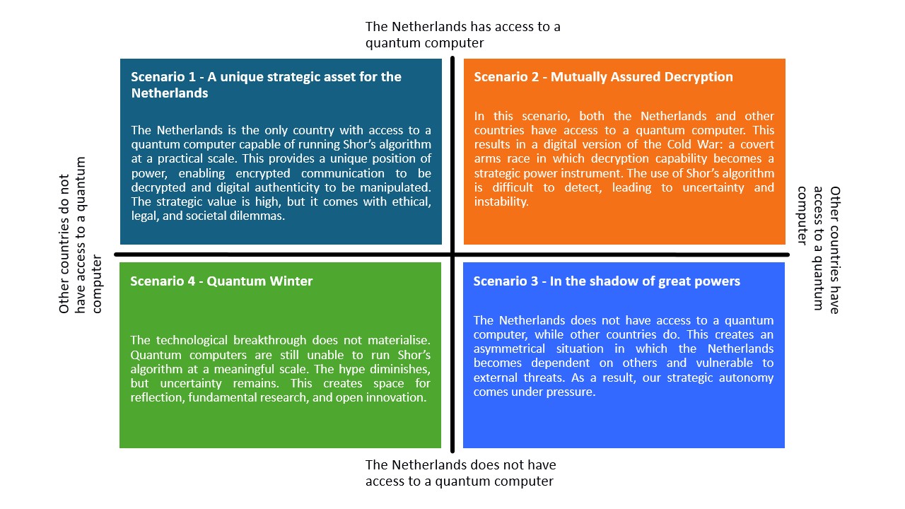Future scenarios for the Netherlands with and without access to a quantum computer and the impact on our digital security.